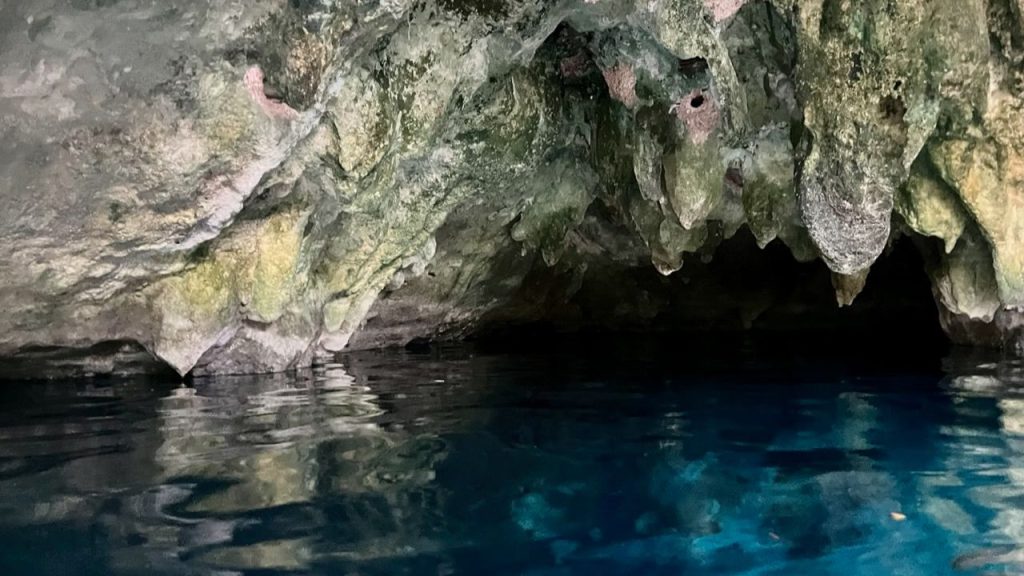 水の中ばかり注目しがちですが、鍾乳洞の中にはコウモリの大群が。上の画像には無数のコウモリの巣が写っています。見えますか?